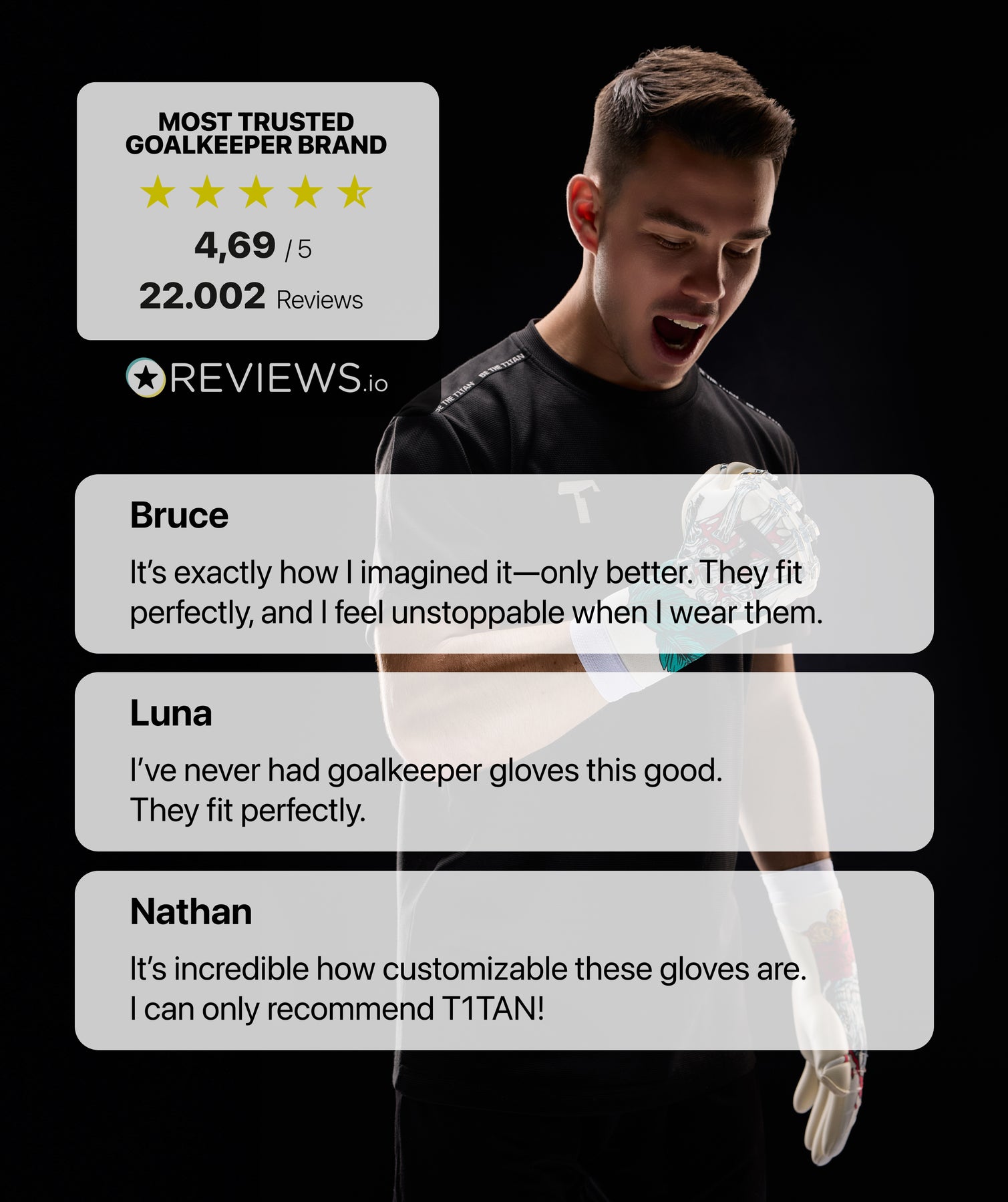 Οι επαγγελματίες συνήθως χρησιμοποιούν τα γάντια τερματοφύλακά μας μόνο για μερικές εβδομάδες, καθώς οι απαιτήσεις σε αυτό το επίπεδο είναι εξαιρετικά υψηλές. Στο T1TAN, έχετε την ίδια ποιότητα με τους επαγγελματίες.