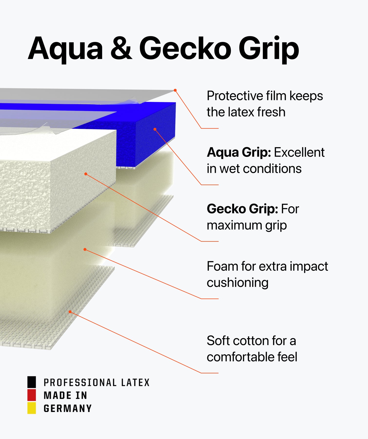 Απόλυτο κράτημα σε κάθε καιρό, χάρη στον συνδυασμό Aqua Grip στις άκρες των δαχτύλων και Gecko Grip στις παλάμες.